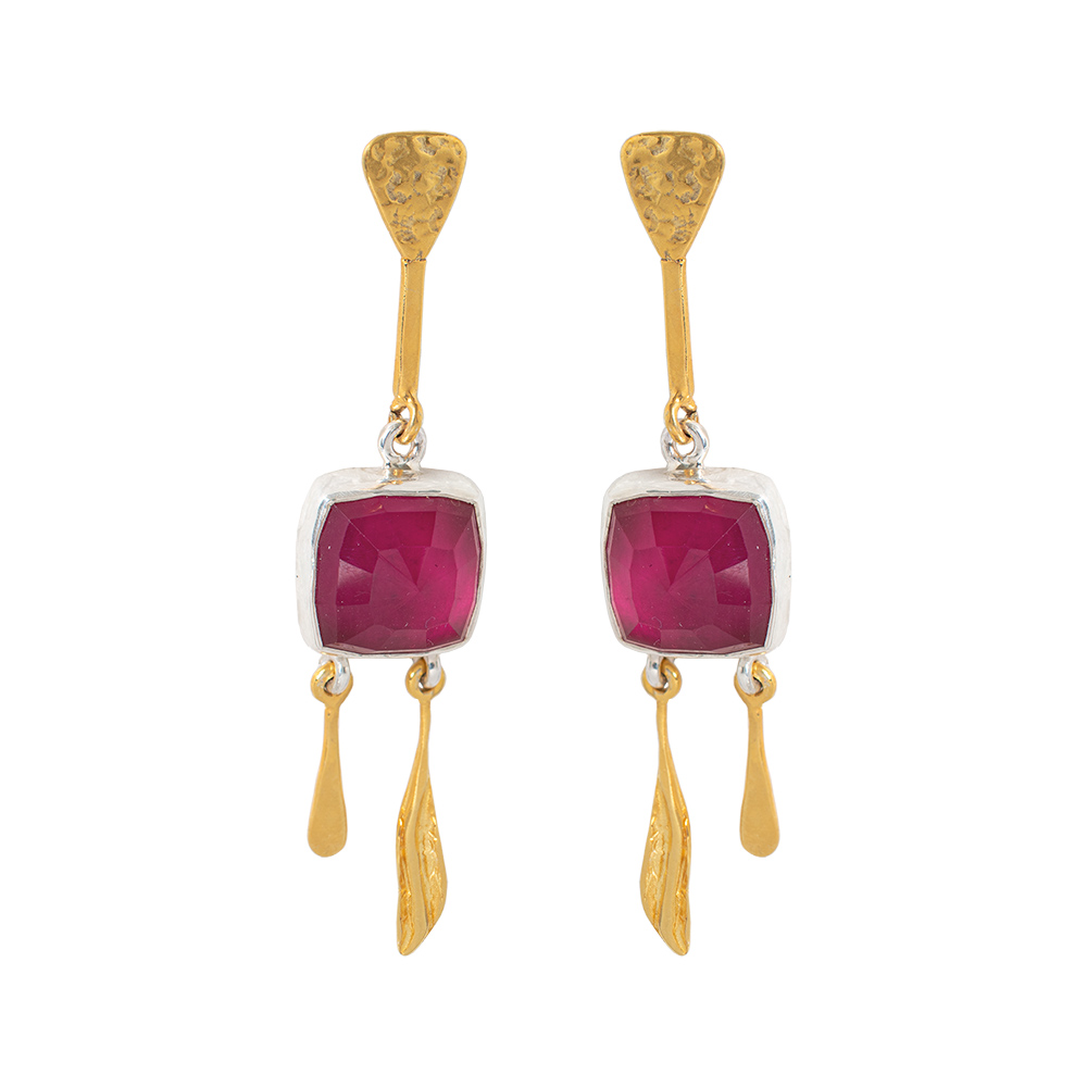 Gold plated silver earrings with faceted crystal quartz and red jade