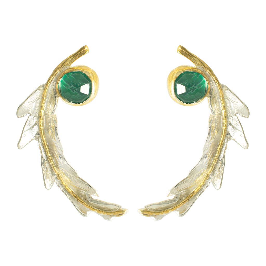 επιχρυσωμένα σκουλαρίκια από ασήμι με ταγιέ ντουμπλέτα κρύσταλλο και μαλαχίτη