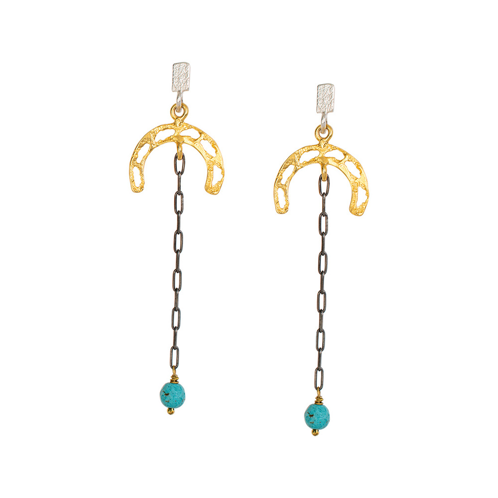 επιχρυσωμένα σκουλαρίκια με οξειδωμένο ασήμι και ταγιέ πέτρα τυρκουάζ