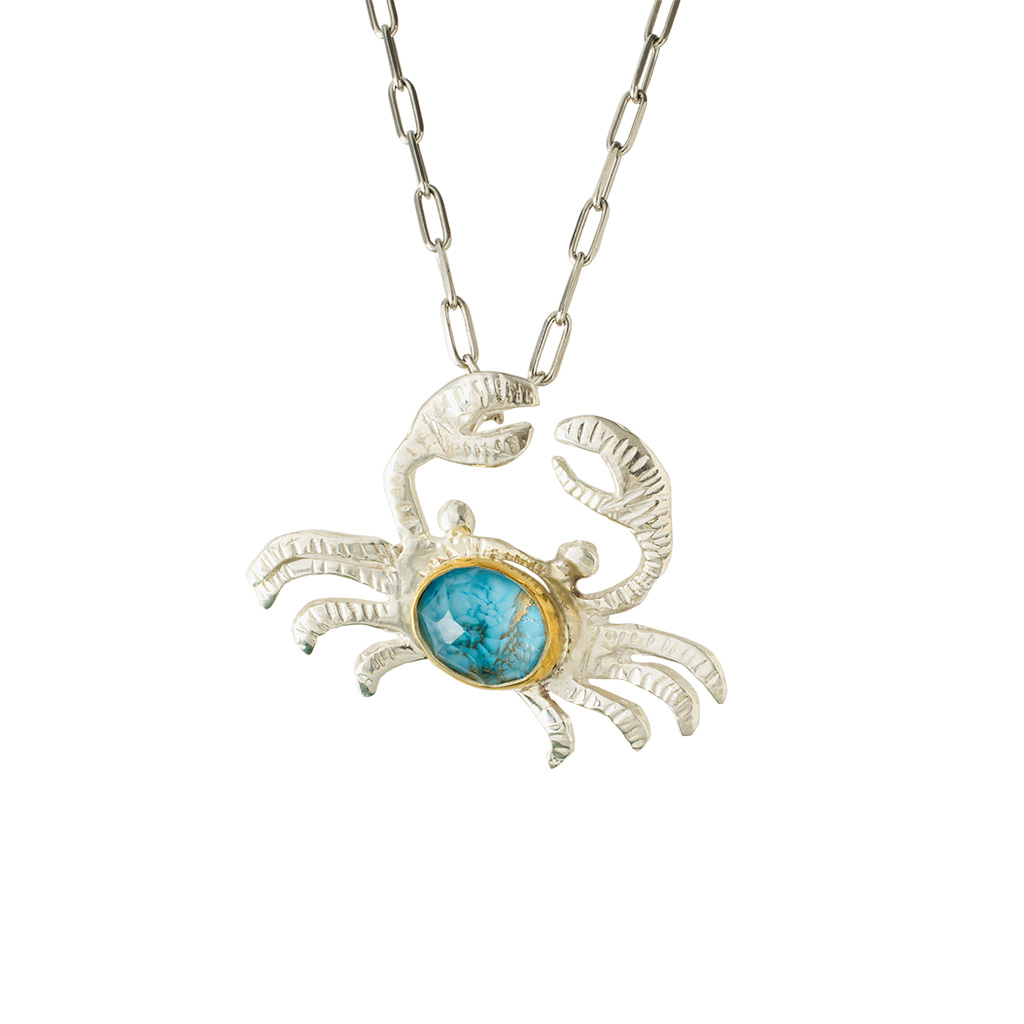 επιχρυσωμένο μοτίφ από ασήμι με ταγιέ ντουμπλέτα κρύσταλλο και τυρκουάζ