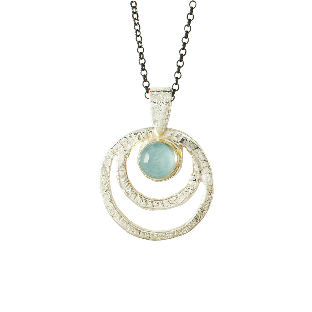επιχρυσωμένο μοτίφ σε ασήμι με ταγιέ πέτρα ντουμπλέτα μπλε χαλκηδόνιο με χαλαζία
