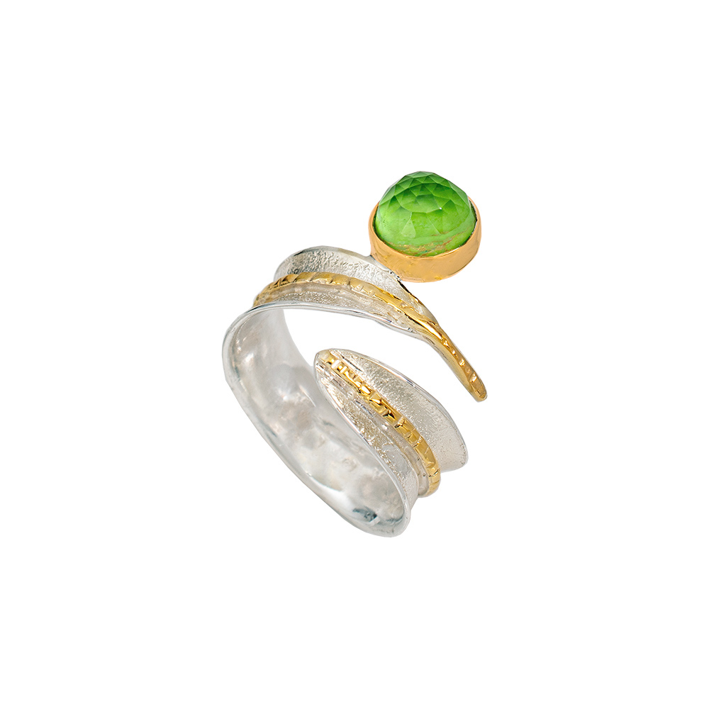 επιχρυσωμένο δαχτυλίδι από ασήμι και πέτρα ντουμπλέτα κρύσταλλο με πράσινο copper τυρκουάζ