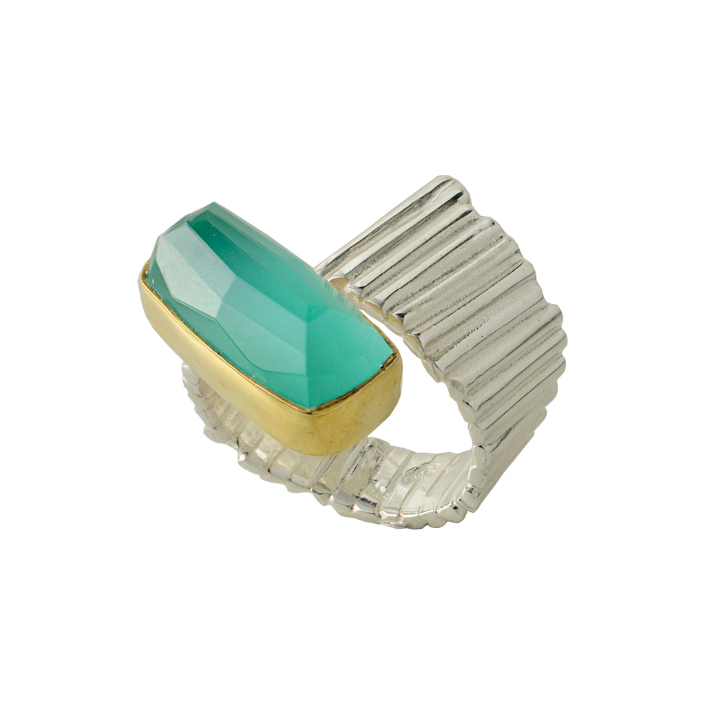 Ασημένιο δαχτυλίδι με πράσινο χαλκηδόνιο ή οπάλιο
