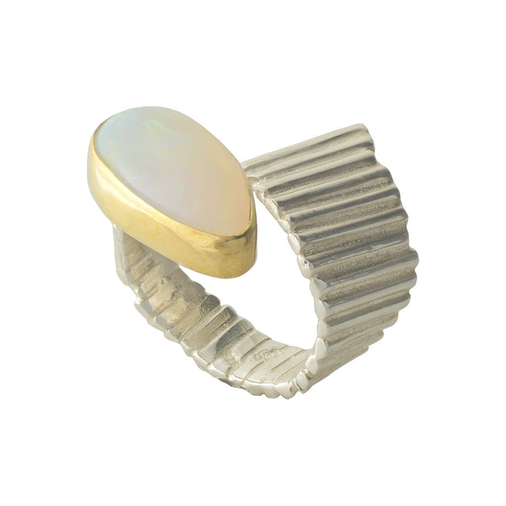 επιχρυσωμένο αχτυλίδι από ασήμι με ταγιέ πέτρα ντουμπλέτα κρύσταλλο με πράσινο χαλκηδόνιο ή οπάλιο