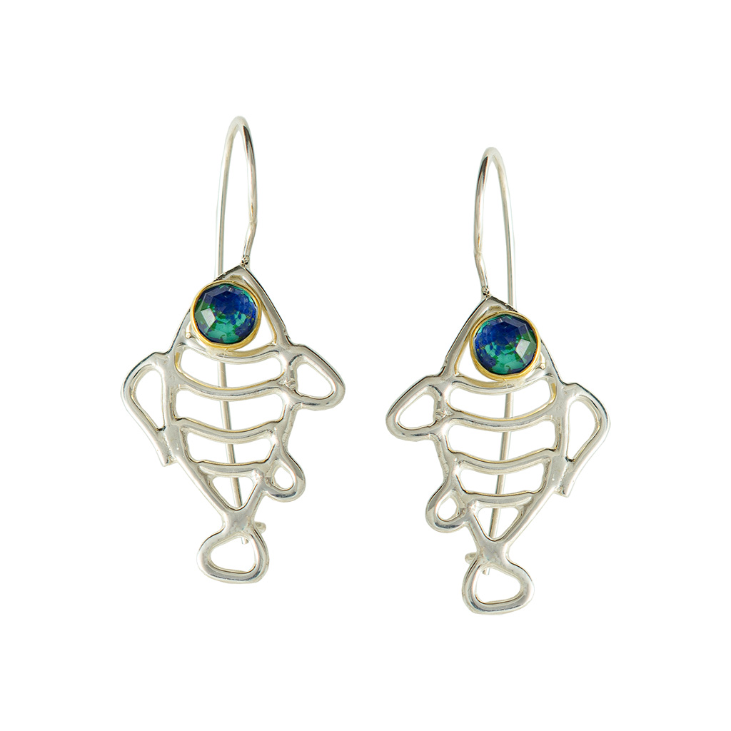 επιχρυσωμένα σκουλαρίκια από ασήμι με ταγιέ πέτρα ντουμπλέτα χαλαζία και αζουρίτη-μαλαχίτη