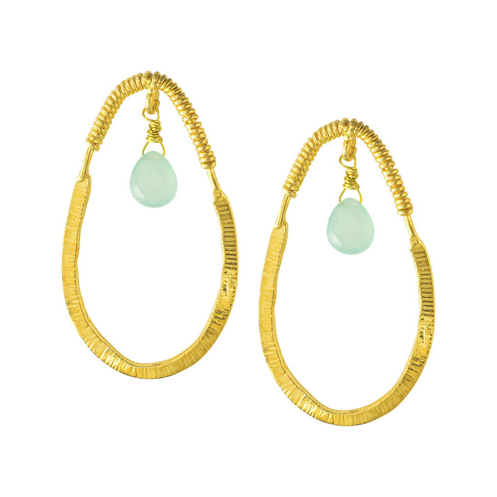 Επιχρυσωμένα ασημένια σκουλαρίκια κρίκοι με μπλε χαλκηδόνιο