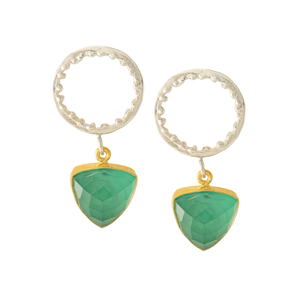επιχρυσωμένα ασημένια σκουλαρίκια κρίκοι με ταγιέ πέτρα ντουμπλέτα πράσινο αχάτη και χαλαζία