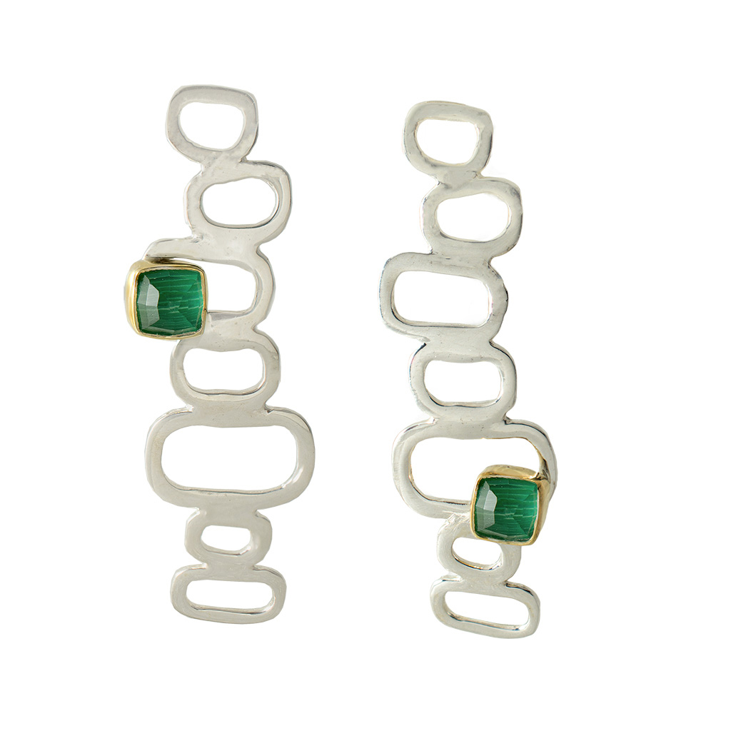 επιχρυσωμένα σκουλαρίκια από ασήμι με ταγιέ ντουμπλέτα κρύσταλλο και μαλαχίτη