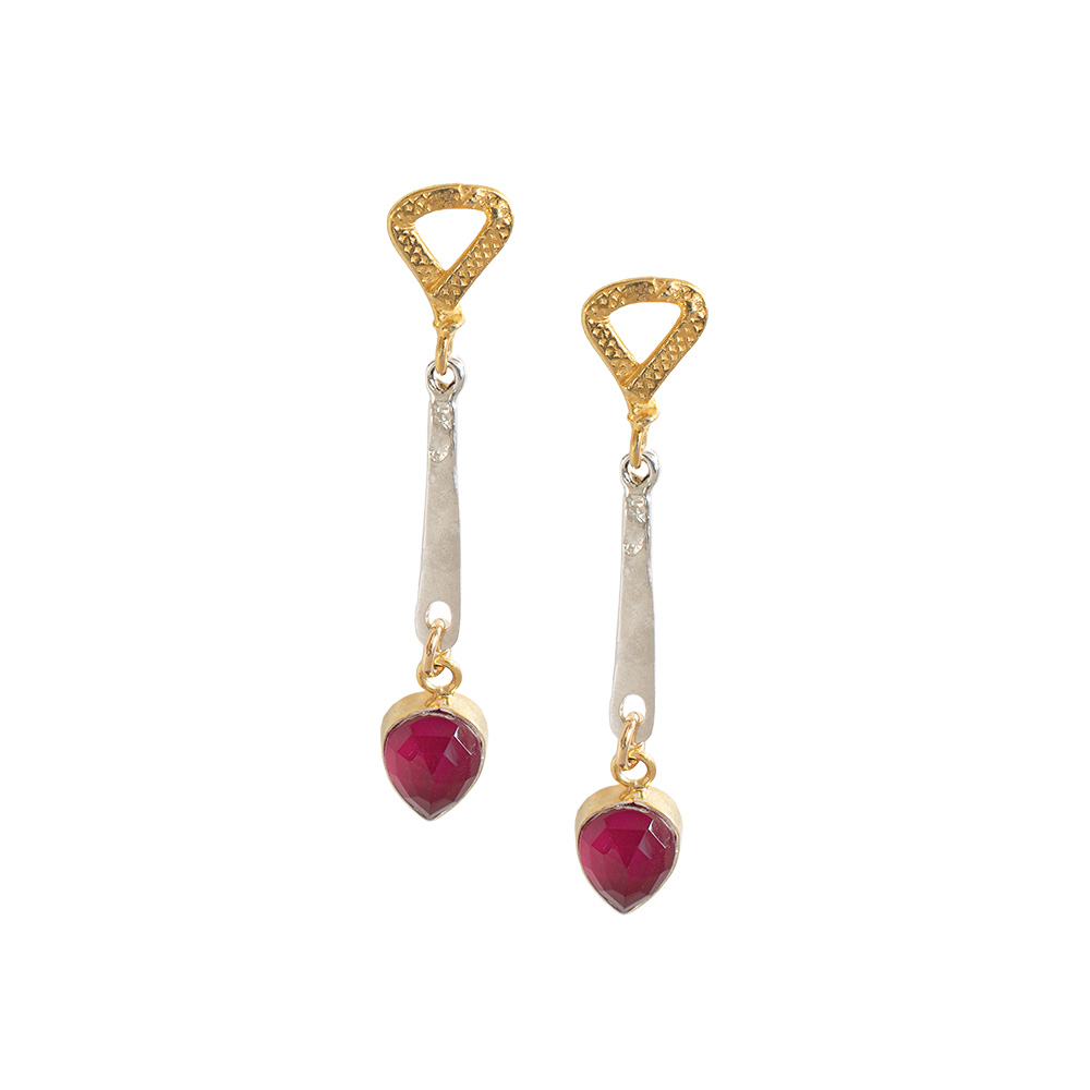 επιχρυσωμένα σκουλαρίκια από ασήμι με ταγιέ ντουμπλέτα κρύσταλλο και ρούμπι αχάτη