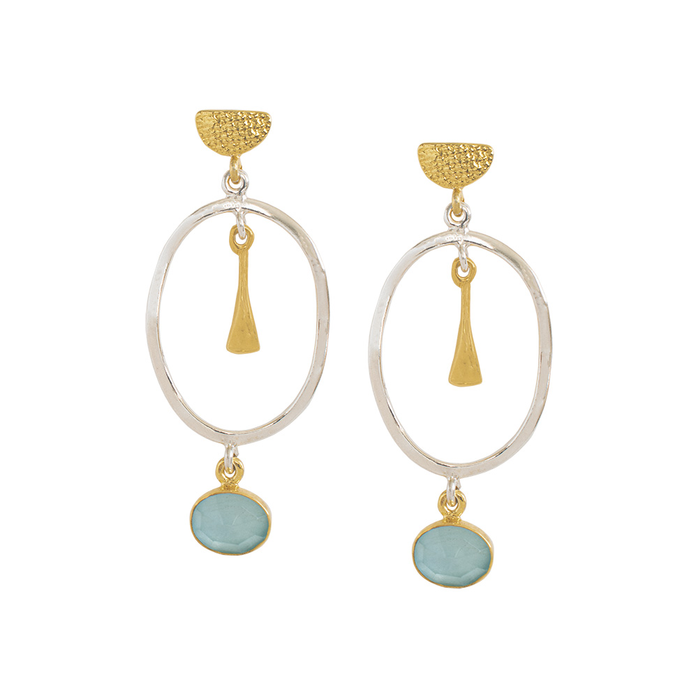 επιχρυσωμένα σκουλαρίκια σε ασήμι με ταγιέ πέτρα ντουμπλέτα μπλε χαλκηδόνιο με χαλαζία