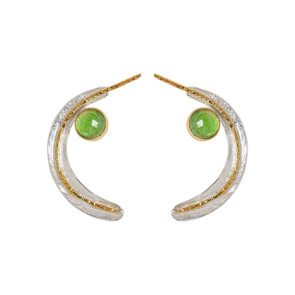 επιχρυσωμένα σκουλαρίκια από ασήμι και πέτρα ντουμπλέτα κρύσταλλο με πράσινο copper τυρκουάζ