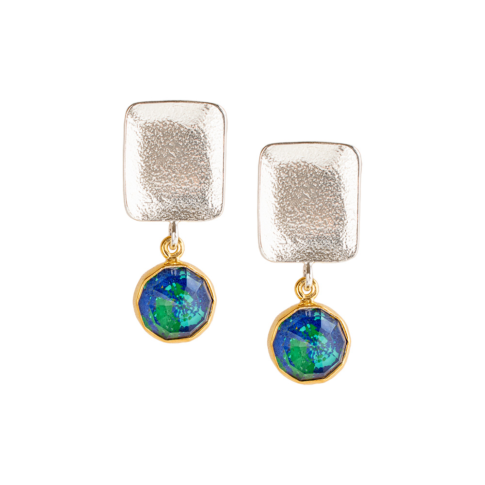 σκουλαρίκια από επιχρυσωμένο ασήμι με ταγιέ ντουμπλέτα κρύσταλλο και αζουρίτη-μαλαχίτη