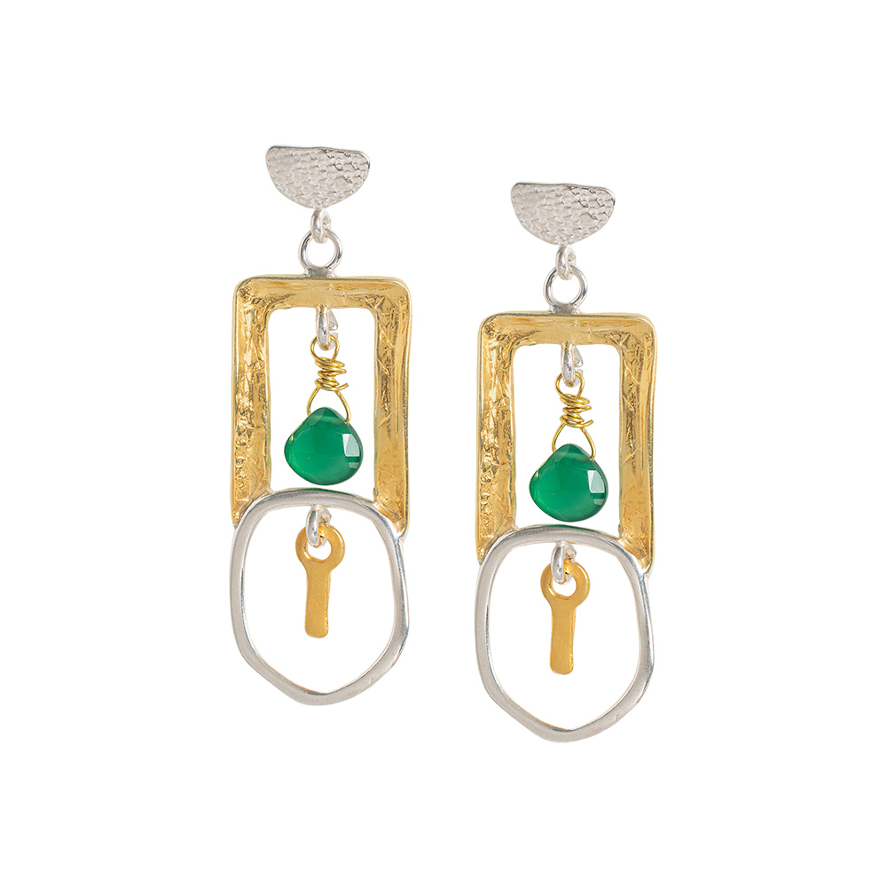 επιχρυσωμένα σκουλαρίκια από ασήμι με ταγιέ πράσινο νεφρίτη