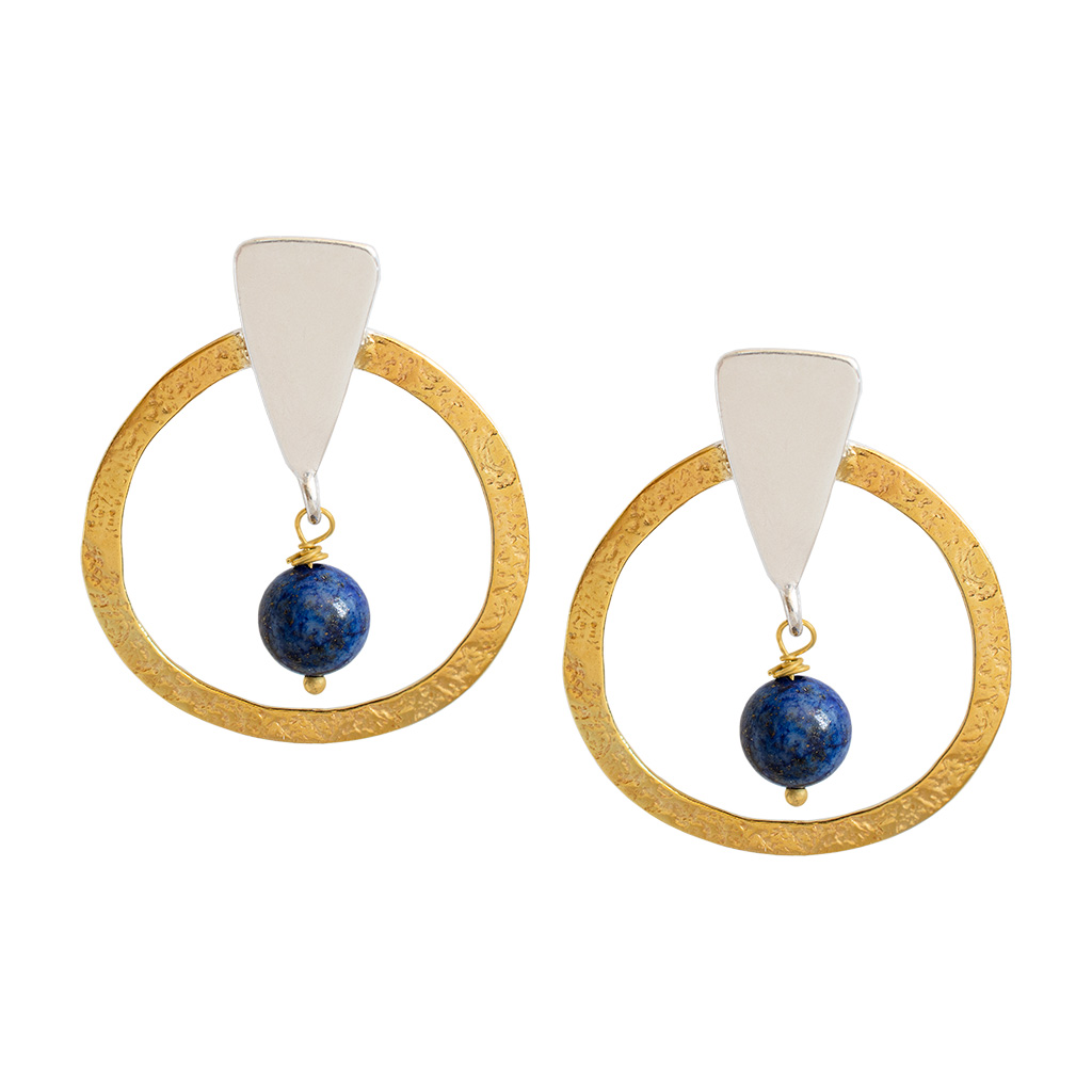 επιχρυσωμένα σκουλαρίκια από ασήμι με πέτρες σοδαλίτη