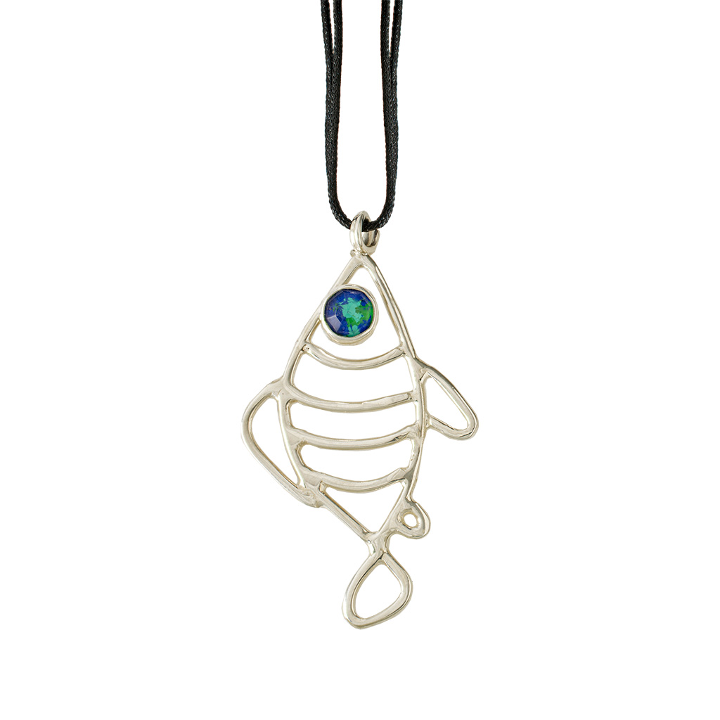 μοτίφ ψάρι ασήμι 925ο με ταγιέ ντουμπλέτα πέτρα αζουρίτη-μαλαχίτη και χαλαζίαΔιαστάσεις: 90 εκ μήκος