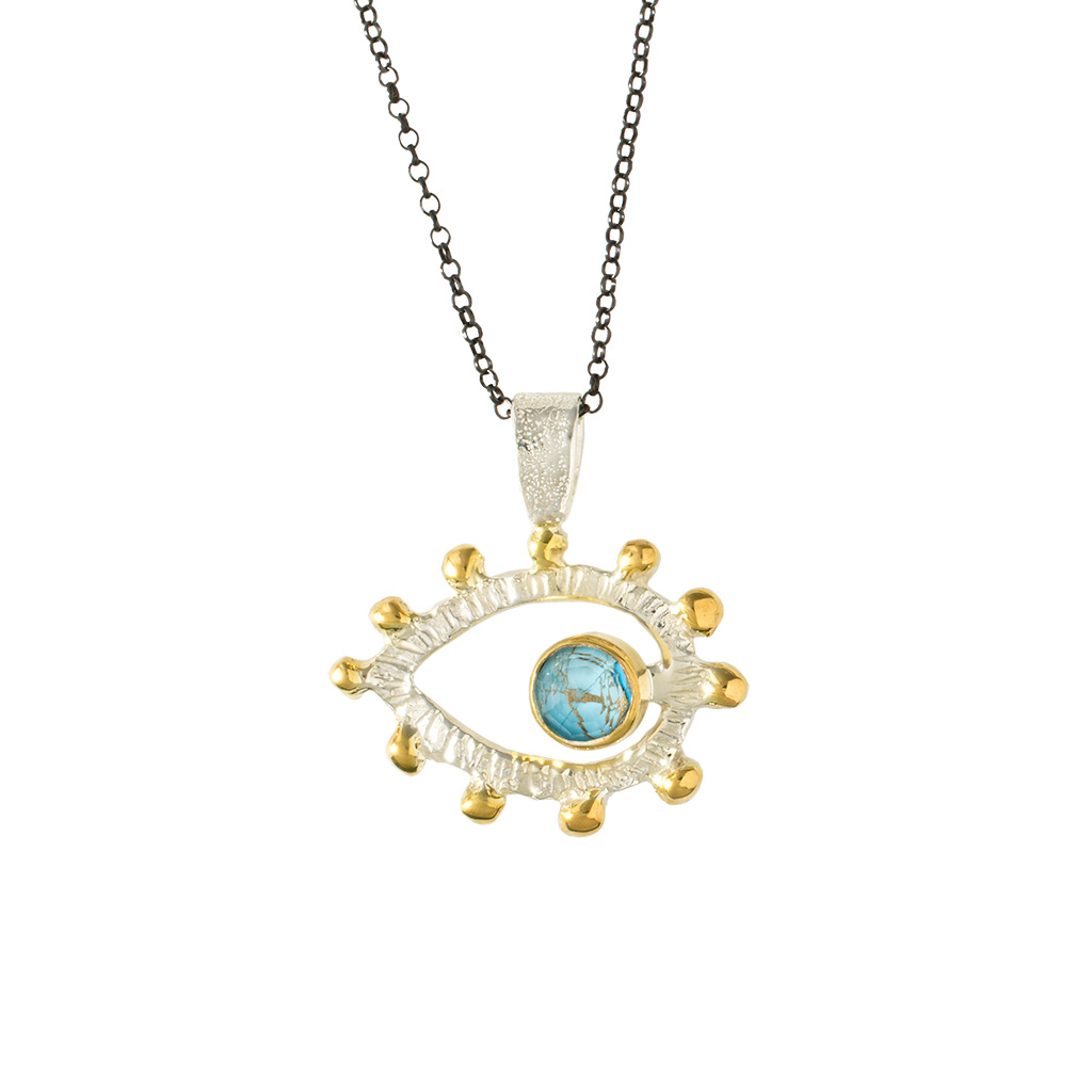 Επιχρυσωμένο ασήμενιο μοτίφ ματάκι με τυρκουάζ