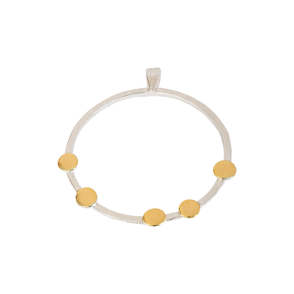 Αυτό το κομψό ασημένιο και χρυσό κρεμαστό κόσμημα συνδυάζει τη σύγχρονη γεωμετρία με τη διαχρονική γοητεία, δημιουργώντας μια σύνδεση που μοιάζει τόσο προσωπική όσο και βαθιά