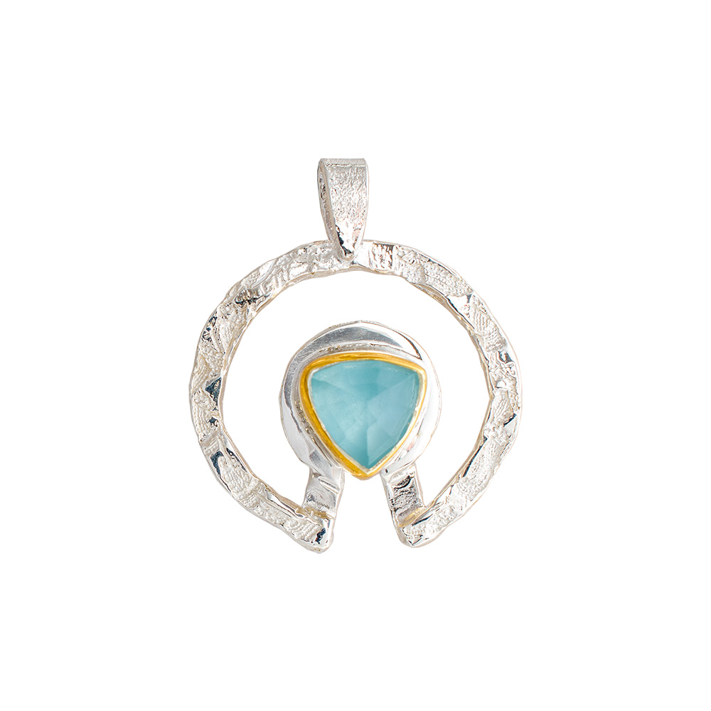 επιχρυσωμένο μοτίφ σε ασήμι με ταγιέ πέτρα ντουμπλέτα μπλε χαλκηδόνιο με χαλαζία