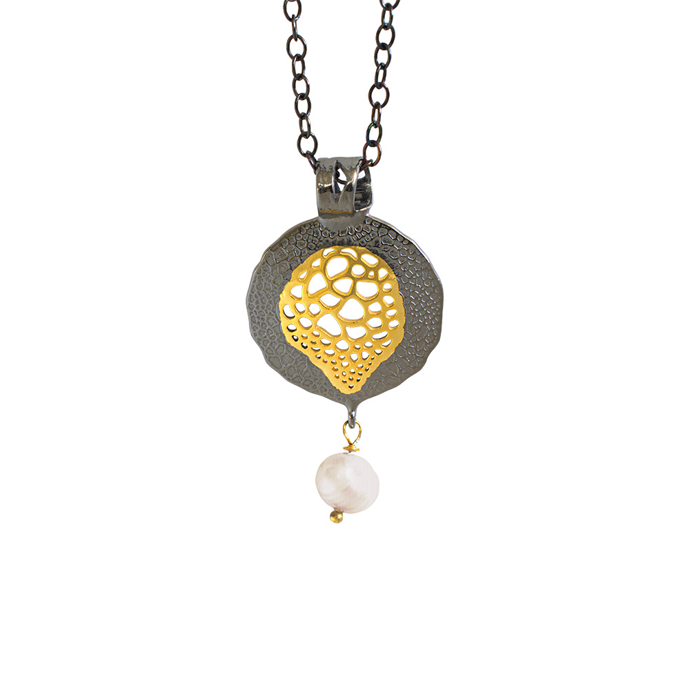 επιροδιωμένο και επιχρυσωμένο μοτίφ από ασήμι με μαργαριτάρια