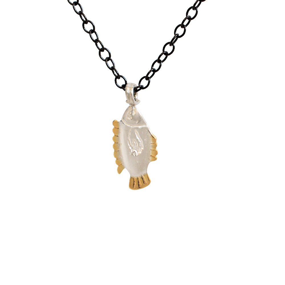 ασημένιο μοτίφ με επιχρυσωμένο ψαράκι