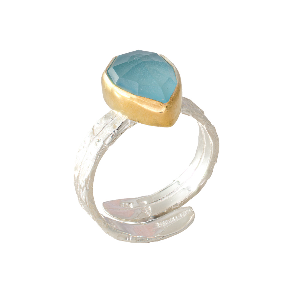 Ασημένιο δαχτυλίδι με μπλε χαλκηδόνιο - Rock Texture