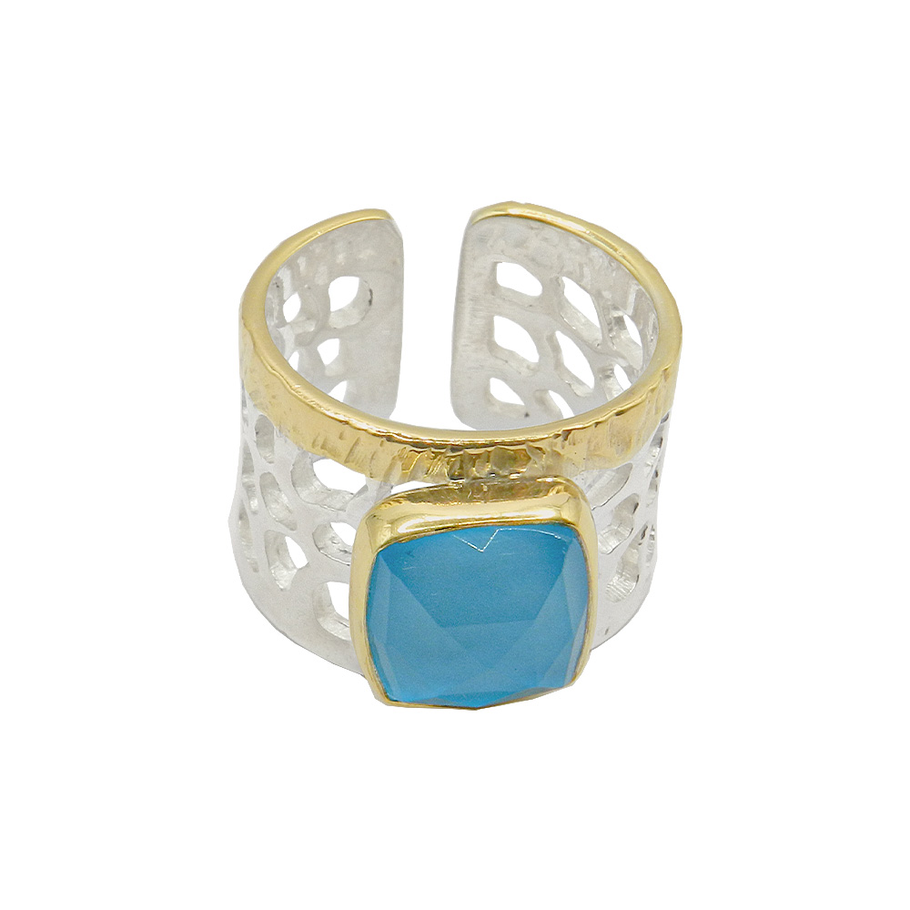 επιχρυσωμένο δαχτυλίδι από ασήμι με ταγιέ ντουμπλέτα κρύσταλλο και τυρκουάζ