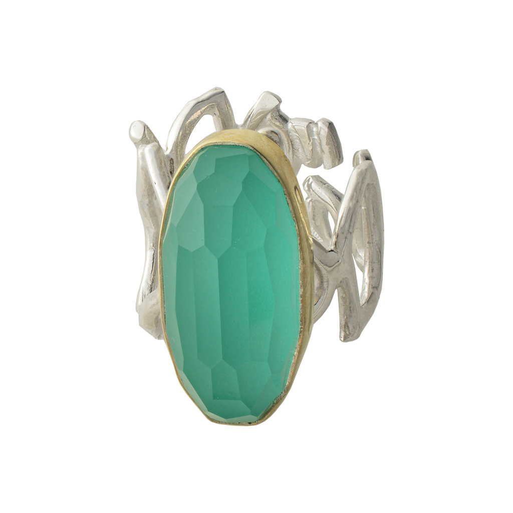 δαχτυλίδι από επιχρυσωμένο ασήμι με πέτρα πράσινο χαλκηδόνιο ή οπάλιο