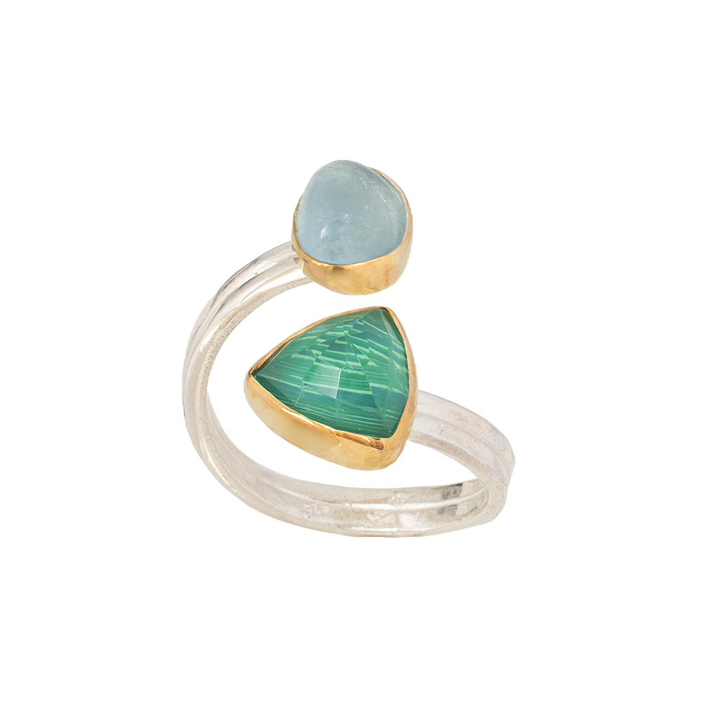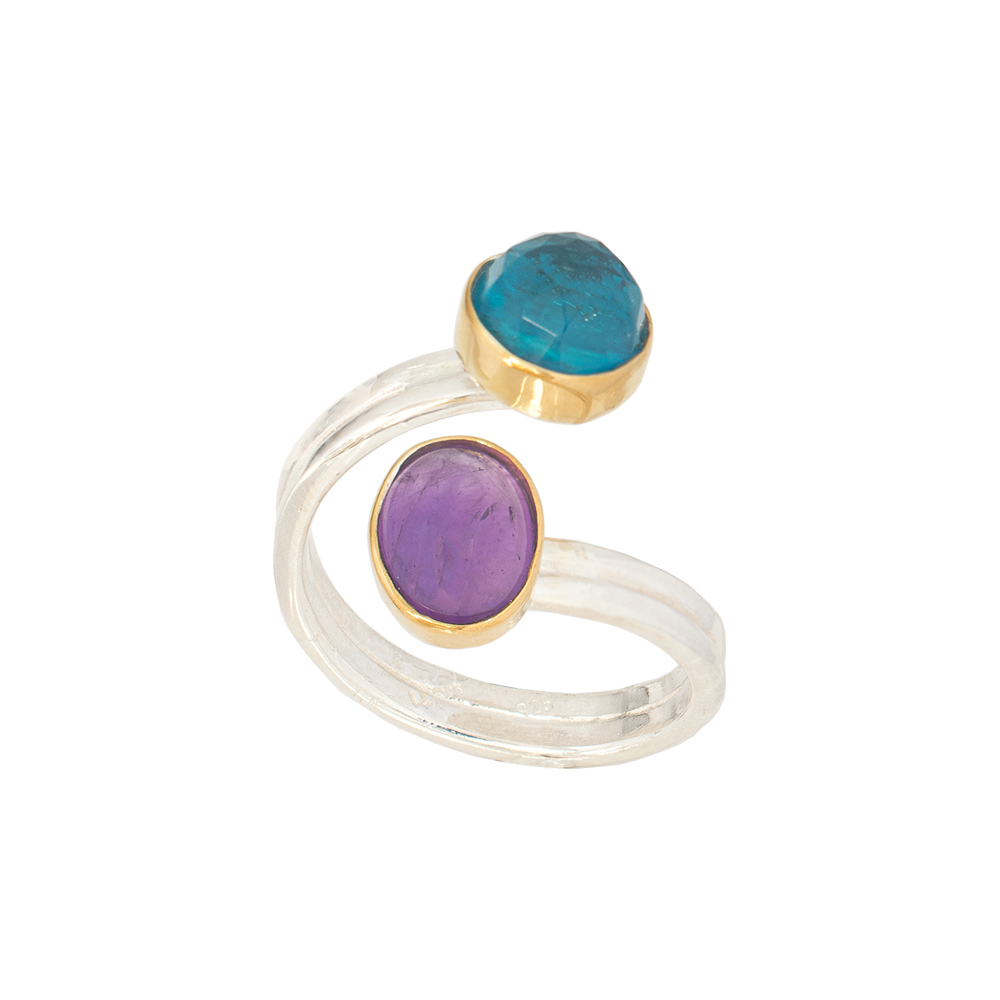 δαχτυλίδι από επιχρυσωμένο ασήμι με διάφορες πέτρες