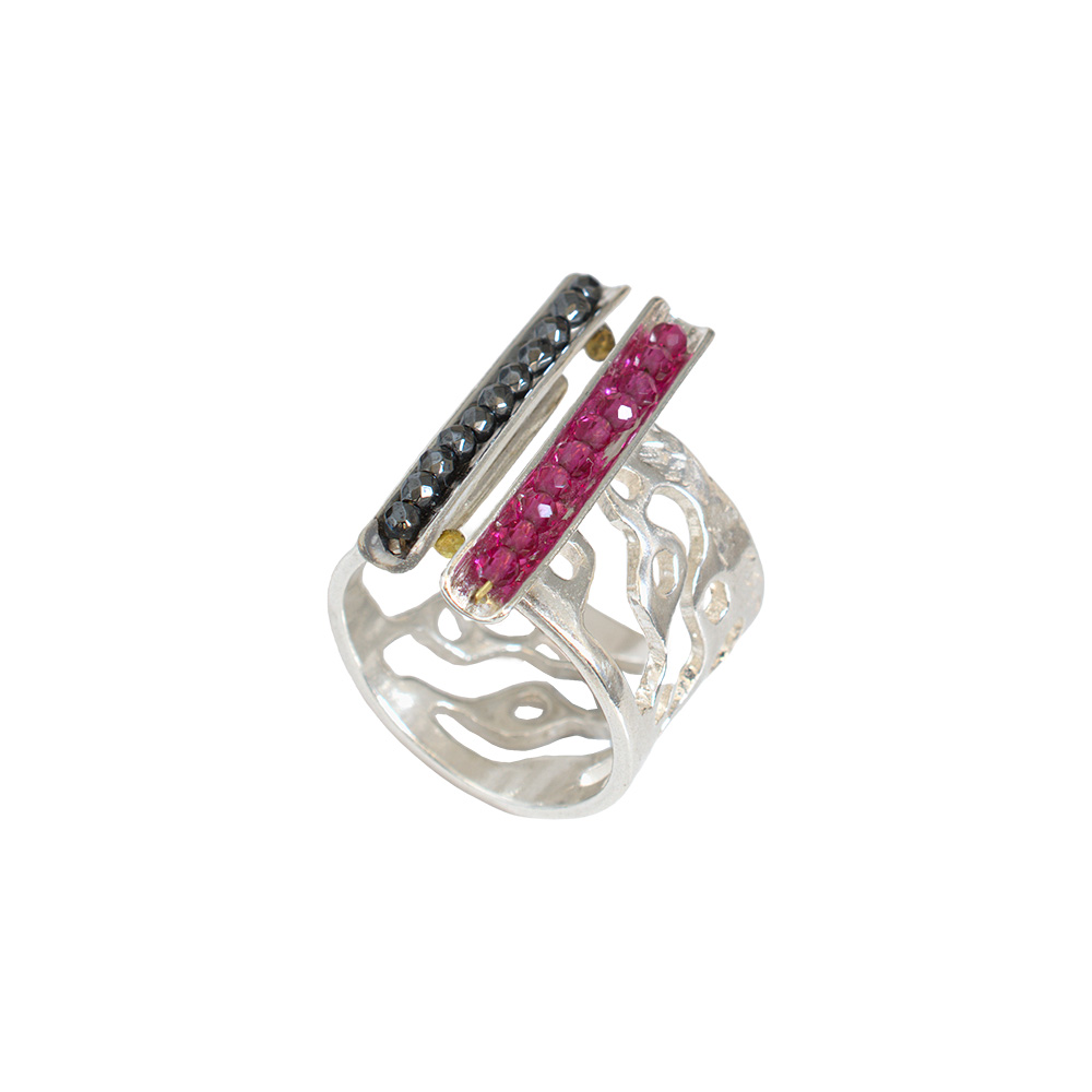 δαχτυλίδι από ασήμι 925ο με ταγιέ ροζ αχάτη και ταγιέ αιματίτη