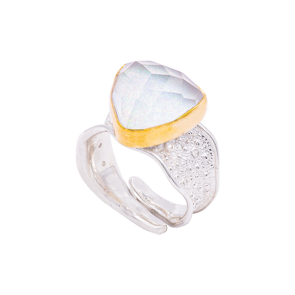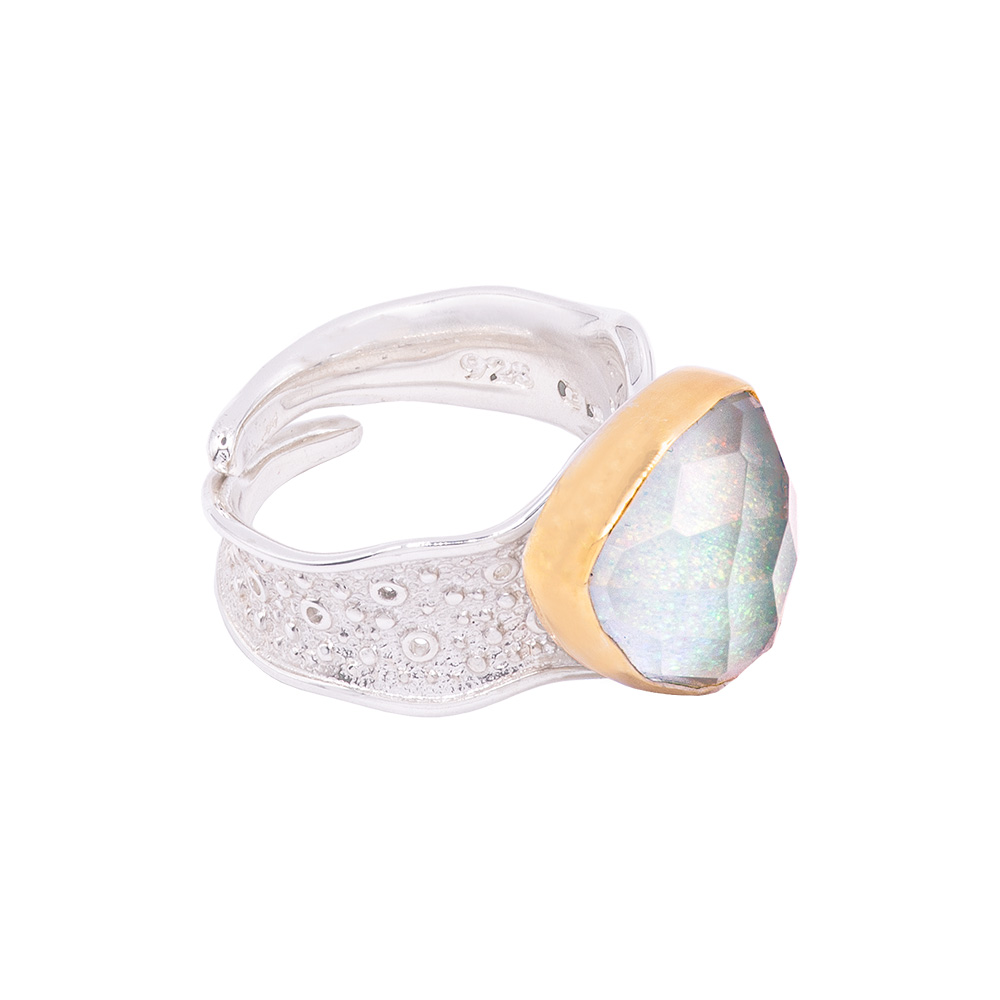 επιχρυσωμένο δαχτυλίδι από ασήμι με ταγιέ ντουμπλέτα κρύσταλλο και οπάλιο
