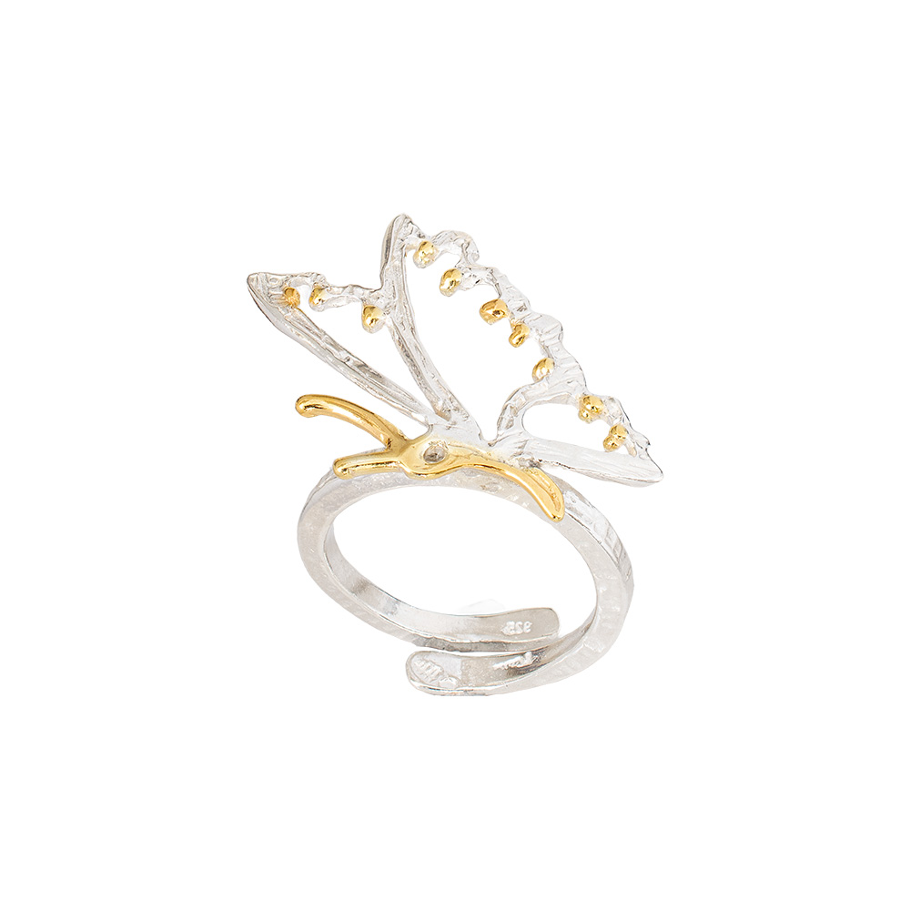ασημένιο δαχτυλίδι με επιχρυσωμένη πεταλούδα