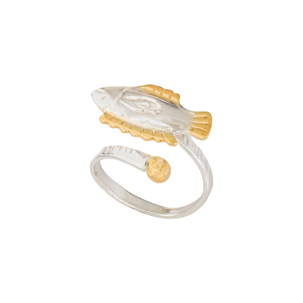 ασημένιο δαχτυλίδι με επιχρυσωμένο ψαράκι