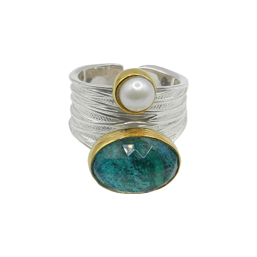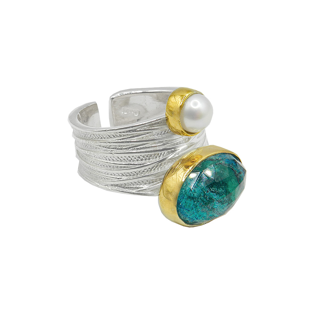 επιχρυσωμένο δαχτυλίδι από ασήμι με μαργαριτάρι και ταγιέ ντουμπλέτα κρύσταλλο και χρυσόκολλα