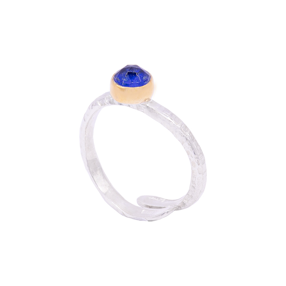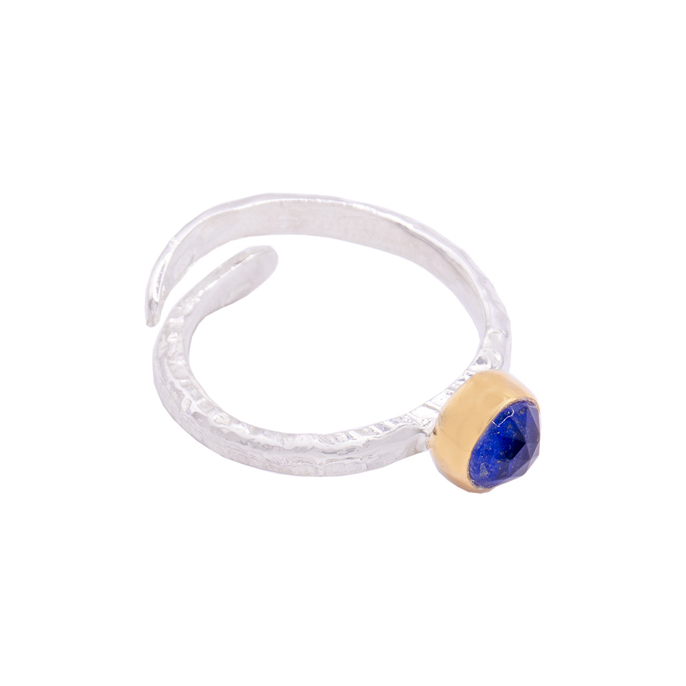 επιχρυσωμένο δαχτυλίδι από ασήμι με ταγιέ ντουμπλέτα κρύσταλλο και λάπι λάζουλι