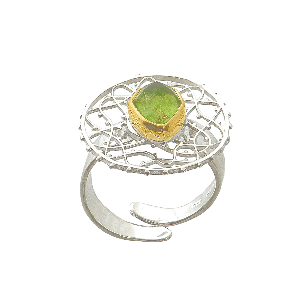 επιχρυσωμένο δαχτυλίδι από ασήμι και πέτρα ντουμπλέτα κρύσταλλο με πράσινο copper τυρκουάζ