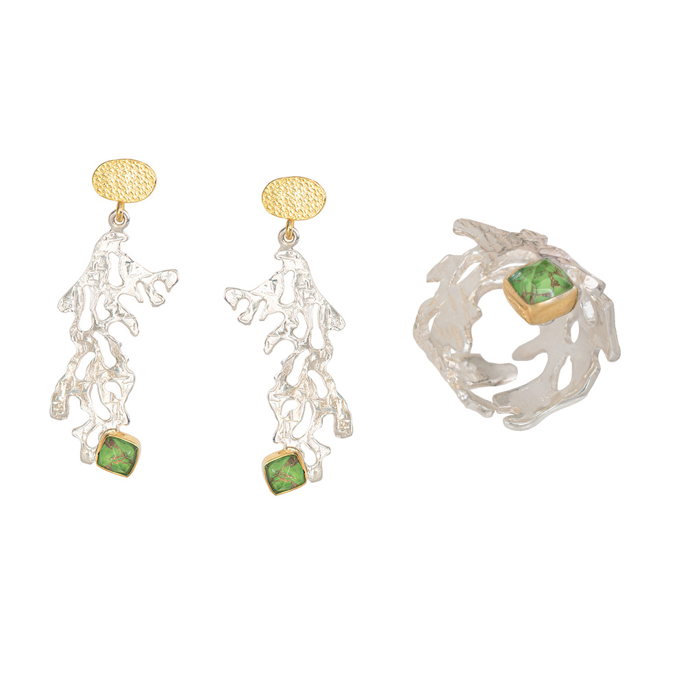 Αυτό το σετ κοσμημάτων φέρει ένα τολμηρό και περίπλοκο σχέδιο που τονίζει την ομορφιά της φύσης, είναι τέλειο για όσους θέλουν να κάνουν μια δήλωση με τα κοσμήματά τους και να ξεχωρίσουν από το πλήθος!