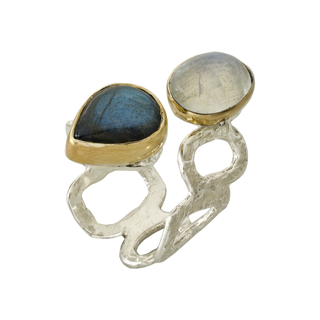 δαχτυλίδι από επιχυσωμένο ασήμι με διάφορες πέτρες